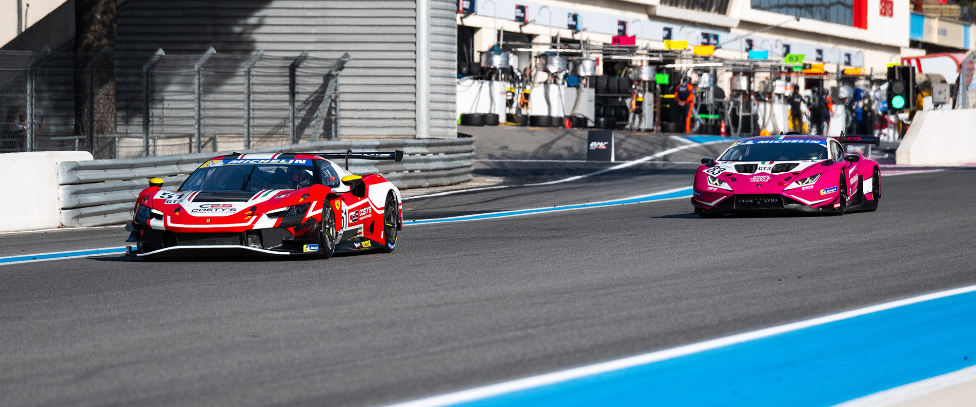 The no74 Kessel Racing Ferrari 296 GT3 is second in the standings on 33 points after two podium finishes in Barcelona and Le Castellet, with the no83 Iron Dames Lamborghini in third place on 25 points after the team finished second from pole in Le Castellet.