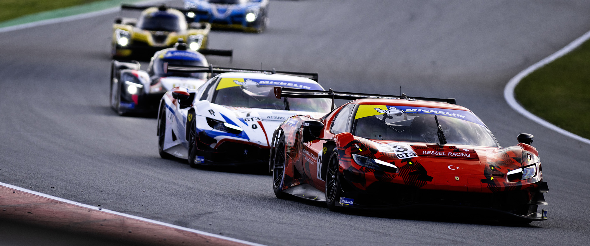 The no51 AF Corse Ferrari was given a drive through penalty for causing the collision with the no83 Porsche, which dropped Donno out of lead and promoted David Fumanelli’s no33 Kessel Racing Ferrari into first place, with Murat Cuhadaroglu joining him on the top step of the podium to become only the second Turkish driver to win a MLMC race.