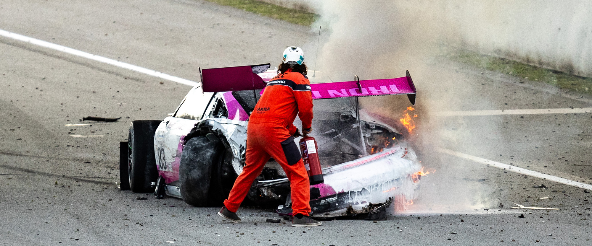 The race was interrupted by two Safety Cars before an incident at Turns 9 and 10 when the no83 Iron Dames Porsche driven by Marta Garcia was hit by the no51 AF Corse Ferrari of Eliseo Donno, the Porsche going off at high speed into the barriers before bouncing back onto the track. The race was red-flagged, and Marta Garcia emerged from the badly damaged car, walking away to the medical car, with the 24-year-old Spanish driver being taken to the hospital for precautionary checks.