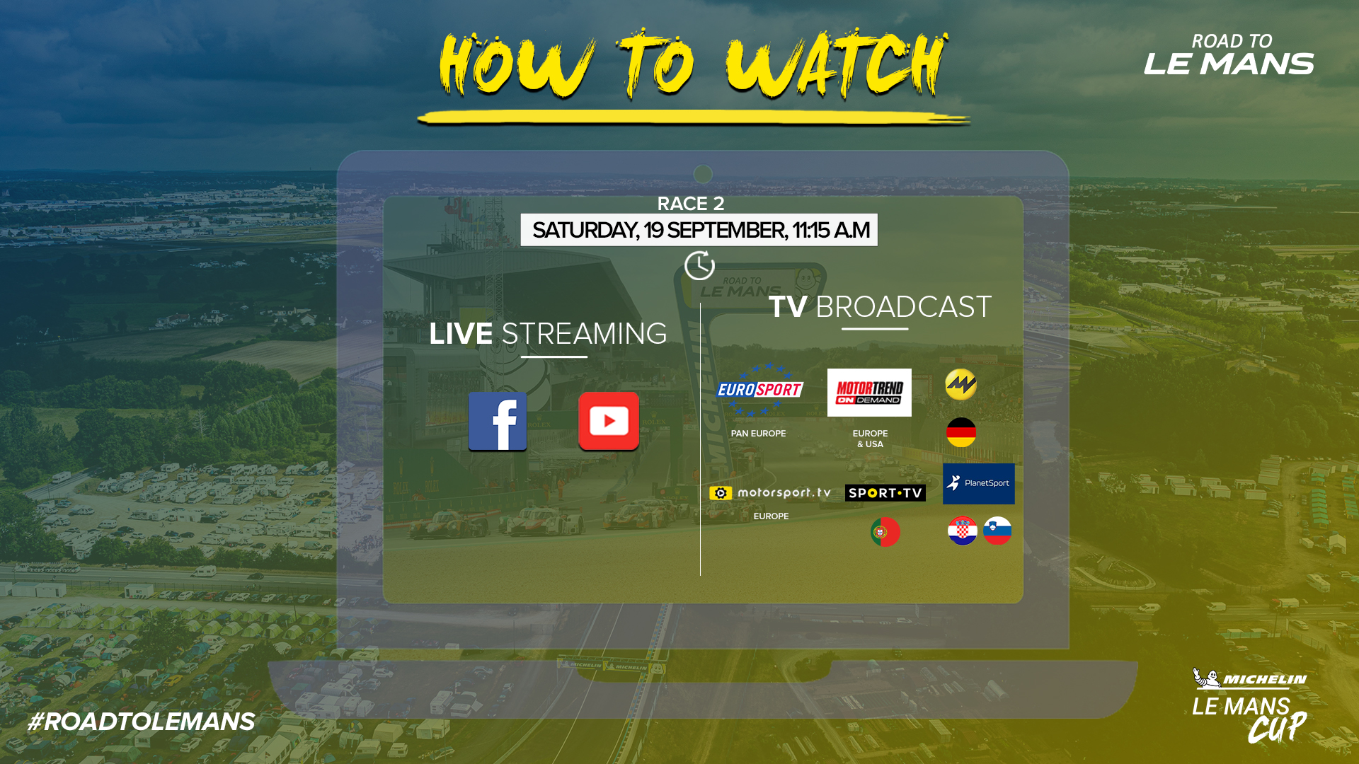 The Saturday Road to Le Mans race will be available to viewers in Europe and the USA on MotorTrendonDemand. The race is also available in Europe on Motorsport.tv and on Eurosport.
