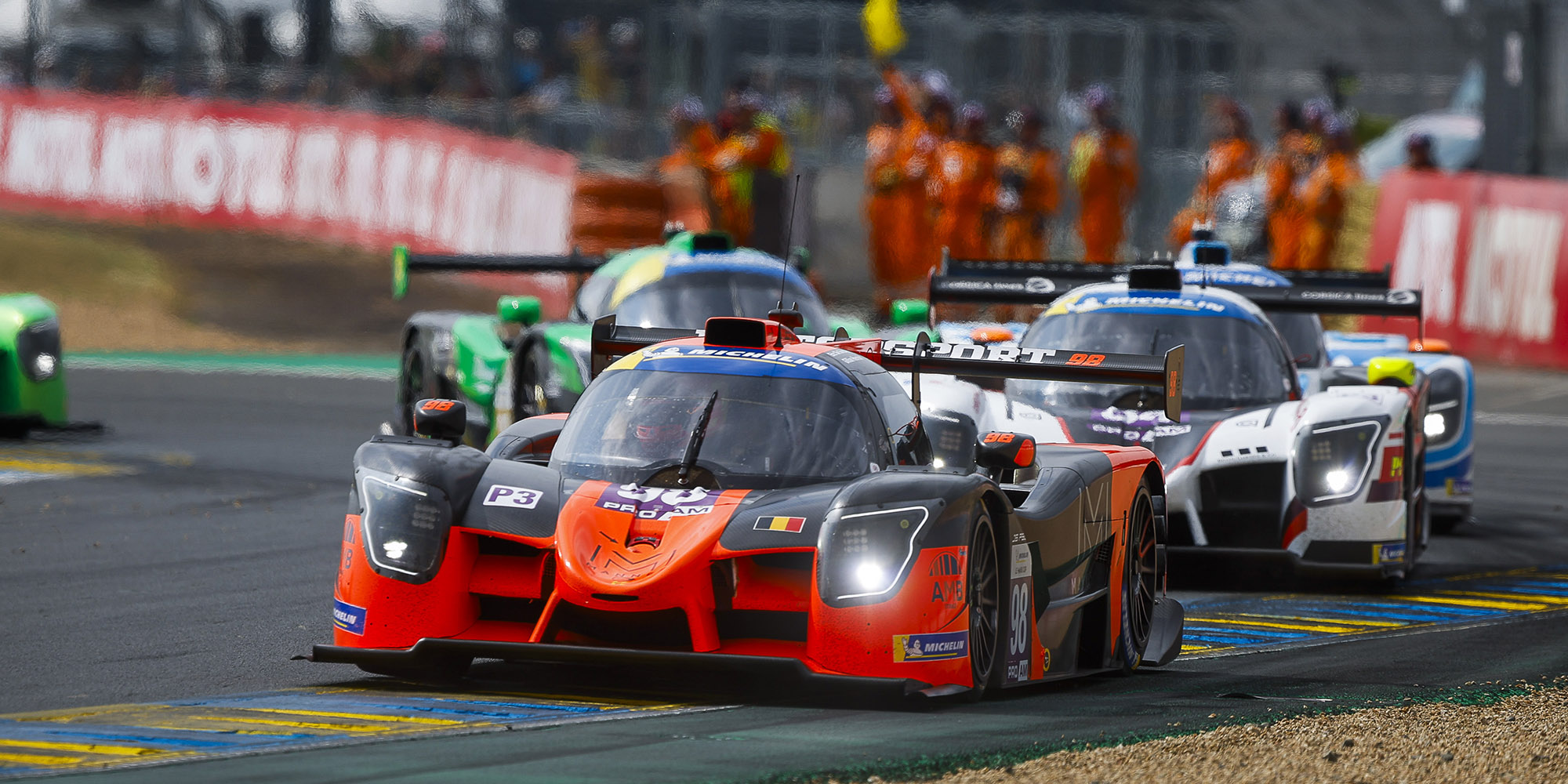 The LMP3 Pro/Am battle was led by the no77 Reiter Engineering Ligier driven by Horst Felix Felbermayr, four seconds ahead of the no88 R-ace GP Duqueine of Fabien Lavergne, with the no31 CD Sport Duqueine in third. However, Gillian Henrion in the no98 Motorsport98 Ligier was on a charge. The French driver caught and passed Kevin Rabin in the no31 Duqueine and then closed the gap to Lavergne.